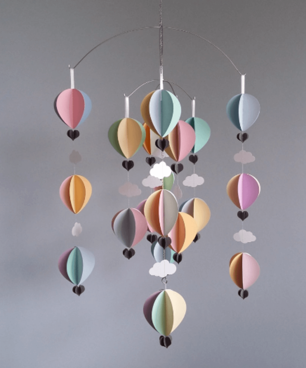 Pastel Nursery Hot Air Balloon Baby Mobile. Baby mobile in soft pastel shades makes a wonderful gift to celebrate the arrival of a new baby.